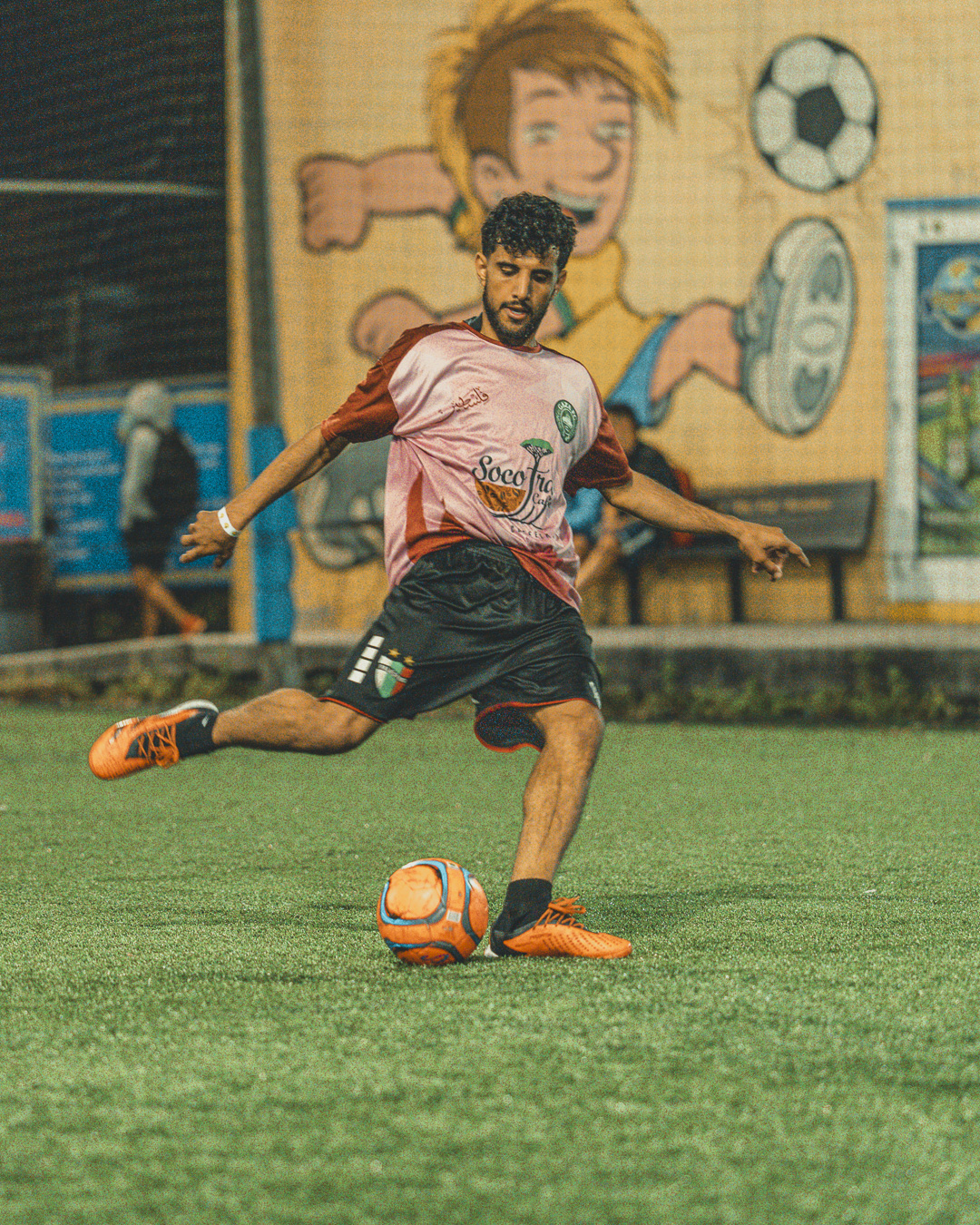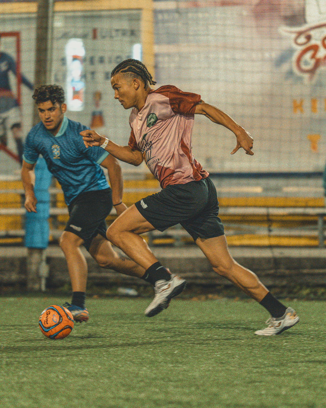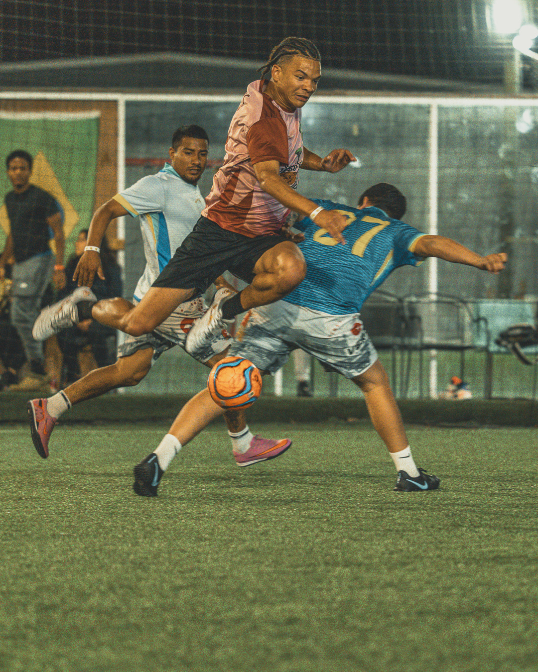 A collection of photos of my friends, Shaker and Julian, in a 5-on-5 soccer game.